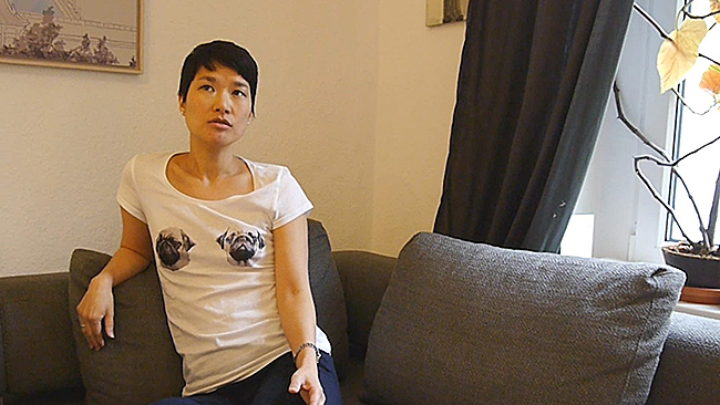 The Product Love’s first video alternates between three translators struggling to translate Benjamin’s article into English. “He writes sort of poetically too, so it’s” one of the translators starts to explain, with a flip of the wrist. The translators’ varied attempts are intercut with non-descript still shots of urban Chinese landscapes and architecture; a glimpse of the characters Chang casts as Wong and Benjamin in the second video; and the mundane movements of a folder labeled “Walter Benjamin Archiv” within an institutional office setting. The video highlights one particular passage in the article that each translator reads somewhat differently: in response to Benjamin’s question of how Wong would express herself if she were not an actress, Wong replies “Touch would” (written in English in the otherwise German-language article), after which everyone at the meeting knocks on the table at which they sit. One translator reads Benjamin’s interpretation, “touch would,” as incorrect, hypothesizing Wong meant “touch wood” and that the knocking on the table enacted the superstition of “knocking on wood” (implying let’s hope Wong never has to stop acting). Another translator reads “touch would” as meaning Wong would express herself through touch (if she weren’t acting), and that the knocking on the table assimilates a German means of expressing satisfaction following a performance, like applause. Chang plays with these various interpretations springing from the English cognates “would” and “wood,” while teasing out the sexual implications of “touch wood” coinciding with Benjamin’s seeming infatuation with the actress (Pollack).