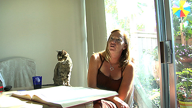 gaze, her dirty flesh, “toad”-like hand, accompanying cat, and medium-specific