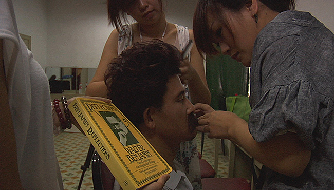 A fellow crew member adds (in Chinese with English subtitles): “And then in this section, we can reveal the characteristics of Benjamin as an intellectual, whatever his nervousness, neurosis and awkwardness, all can be revealed.” These lines intimate the filmmakers’ sophisticated reflections on Benjamin’s desire for Wong, which they relate to the purported positive intentions of colonialist expansion and attendant Orientalism and sexual exoticization (i.e., the desire for the Westerner to get close to and make feel good or sexually gratified the Eastern culture or subject).